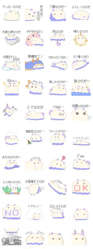 もちもちまんまる コモンウミウシのくじらちゃん。 ゆる~いラインスタンプになりました。ざっきーに より発売