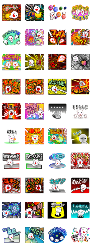 おはようからおやすみ、了解、応援、鬼レベル、裁判、敗訴、頑張る、喜怒哀楽、そだね、復活、うるさい、離脱などを躍動的に伝えるスタンプを中心とした第7弾(改訂版)