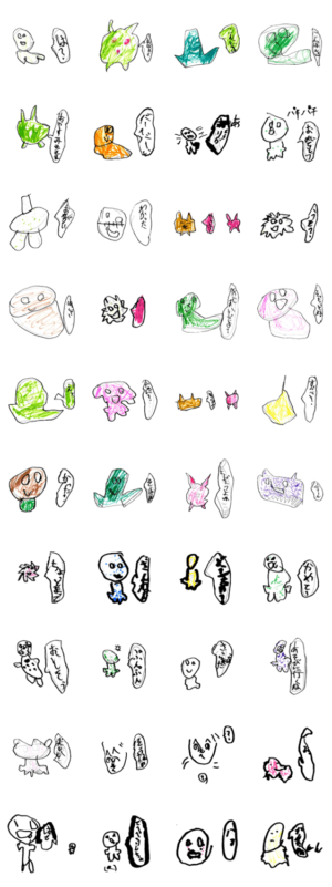 色んな面白いスタンプをかきました!(小学2年生の男の子の作品です)Age design より発売