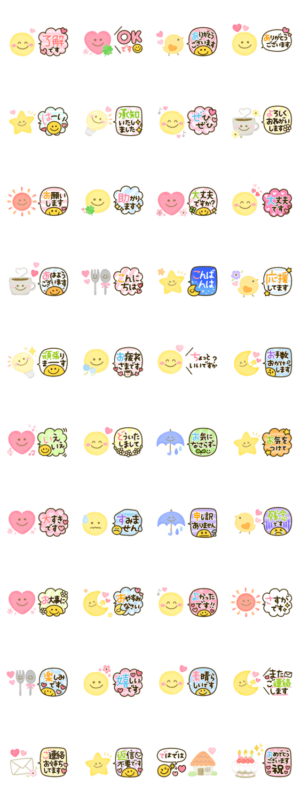 パステル調で優しい色合いのシンプルで大人かわいい♡省スペースでちょこんと使える♪みんなが使える無難な笑顔の日常会話ふきだしセットです。かわいい/家族/敬語