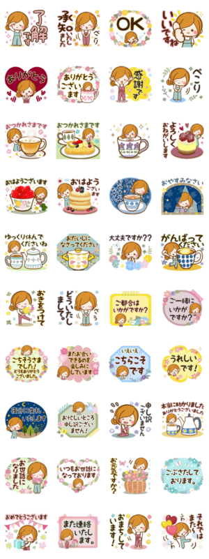オシャレで敬語で使いやすいスタンプです。可愛らしいので使っていて癒されますね。
