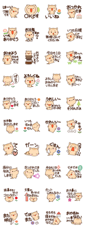 『ちびトラ』の、とらねこスタンプから、あたたかみのある春スタンプです。基本的な言葉や丁寧な言葉を集めた虎猫スタンプ。ネコ好きな方にぜひ。【かたこ】かたこ より発売