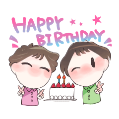 愉快な双子、ぴろこちゃんとようこちゃんの2022年のお誕生日を祝うスタンプ!遥田ゅゅ より発売
