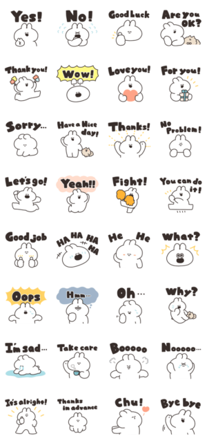 英語を話すうさぎのスタンプです。ナポリ より発売