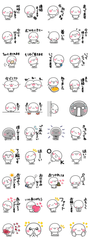 丸いフォルムが可愛い。日々の行動や動作の報告が、スタンプ1つで相手に伝えられて汎用性が高い。
