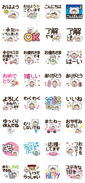 毎日使えるしろくまのかぶり物した大人かわいい女子【デカ文字】♪大きな文字で使いやすい大人の親切で丁寧な言葉スタンプ♪ KEN graphic