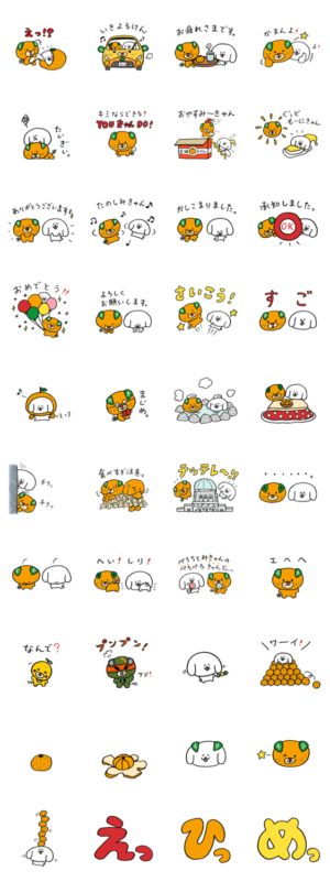 愛媛県イメージアップキャラクター「みきゃん」とパントビスコキャラクター「ぺろち」のコラボスタンプです。Pantovisco より発売