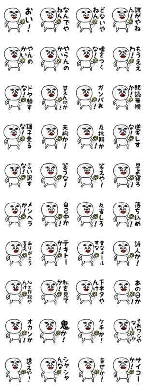 この無表情でシュールな顔のこの子はあなたの分身です。関西弁のツッコミスタンプです。あなたの分身としてお使い下さい。プレゼンにもオススメです♡