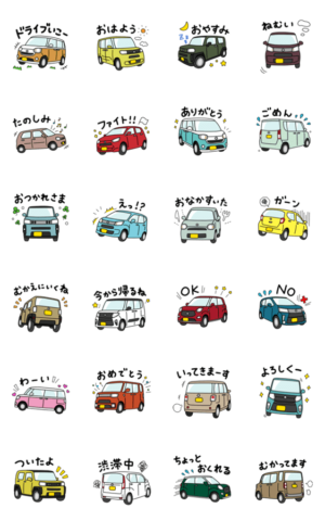 キュートな軽自動車のスタンプが、毎日の会話を盛り上げます!