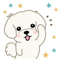 マルチーズとトイプードルのミックス犬。白くてもふもふなマルプーのスタンプ、シリーズ2です♪挨拶や少しシュールなリアクションなど、日常使いにピッタリです!