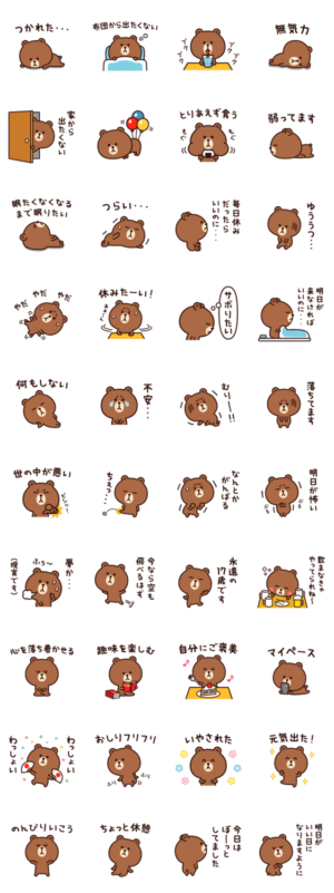 誰でもなんだか疲れるときってあるよね☆ ※BROWN & FRIENDS をみんなでつくろう!キャンペーン参加スタンプです