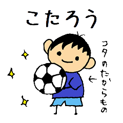 サッカーが大好きなこたろう(虎太朗、虎太郎、小太朗、小太郎等)さんの名前スタンプです。Soracocoro-coco より発売