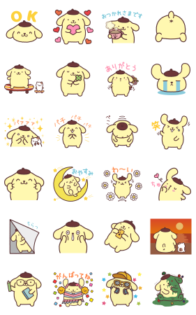 ポムポムプリンのキュートな魅力がいっぱい詰まった、素敵なスタンプです。