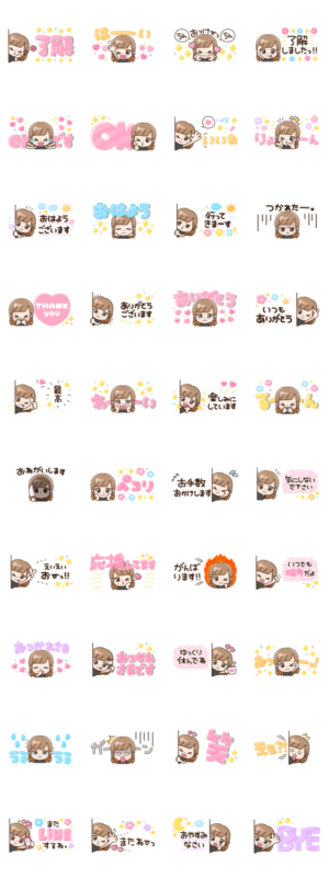 ロングガールの日常で使える言葉を集めた省スペーススタンプです♡ 大人ガーリー/女性/ちむむ。【リメイク専用】 より発売