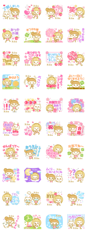 【りか】名前/ちゃん/あだ名。リカ、Rika、里香、梨花等❤ あいさつ 日常 お祝い 花粉等 盛沢山の 名前スタンプ !❤タメ語と敬語両方入❤探【○○○usa】作:usakazu