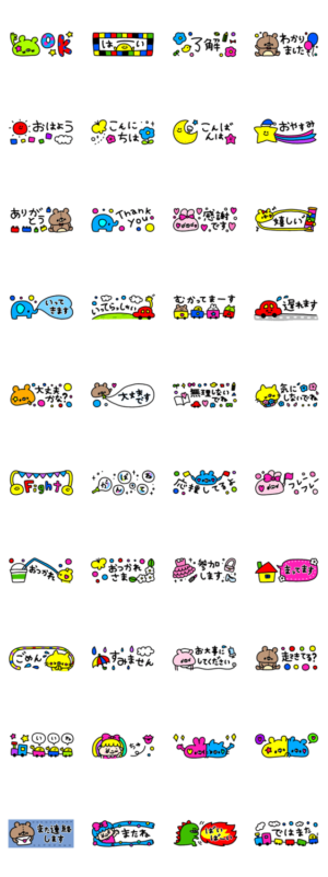 おもちゃ箱をひっくり返したような、そんなスタンプです。省スペースなので会話のスペースをとらずに返信できます。