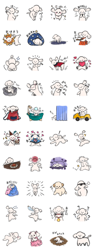 ちょっとだけ目と目が近い、白トイプーのロコちゃんのスタンプです。 日常シーンで使いやすいものを揃えました。もと より発売