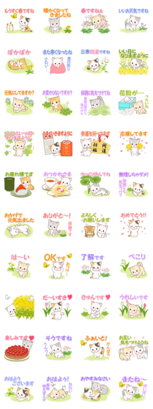 春の野原のベビーにゃんこ スタンプ画像一覧