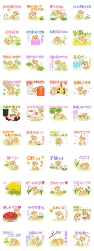 春の野原の赤ちゃん豆柴 スタンプ画像一覧