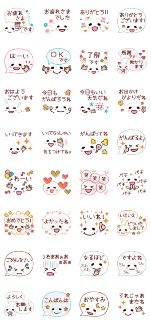 日常あいさつことば基本セット★癒し顔文字 スタンプ画像一覧