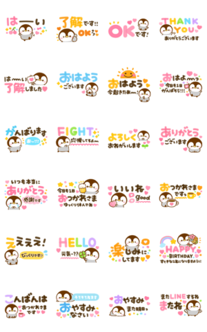 小さなペンギンの赤ちゃん♡ぺんぺんの毎日使えるスタンプです。カラフルな文字が可愛い♡毎日使える敬語や言葉を厳選しました♪省スペースだからちょこんと使えて便利♪