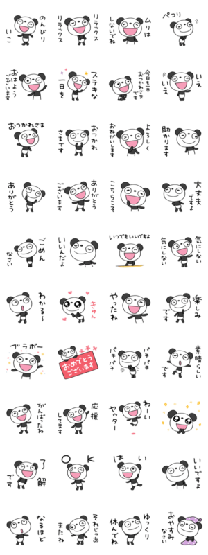 「助かります」「いいんだよ」から「ゆっくり休んでね」まで。ふんわかパンダで、心やさしい言葉を届けよう。家族、学校、お仕事でも。Mami / エストループ より発売