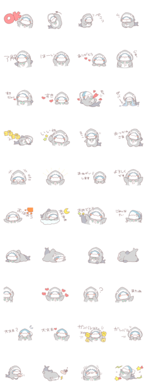 サメの着ぐるみを着た、サメ!?のスタンプです。かまってほしい時などにオススメです!駄菓子屋 より発売