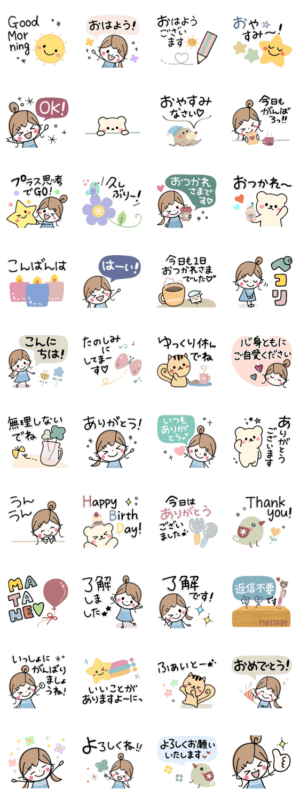 スタンプがいっぱいでお得だなぁと思いました。絵柄も可愛く、使いやすいスタンプだと思います。