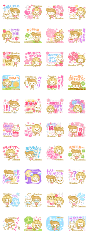 おばぁちゃん(Grandma)の あいさつ 日常 お祝い 花粉等 盛沢山の スタンプ !❤タメ語と敬語両方入❤作:usakazu