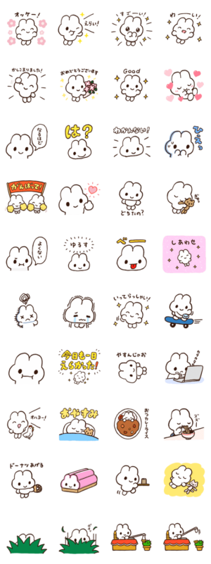 やさうさちゃんの日常で使えるスタンプだよ。ラフに使ってみてね。やさうさちゃん より発売
