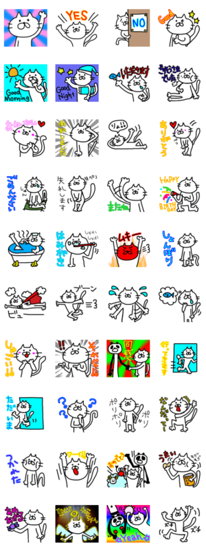 日常で使いやすいゆる〜い落書きねこちゃんのスタンプです。ピーギャ より発売