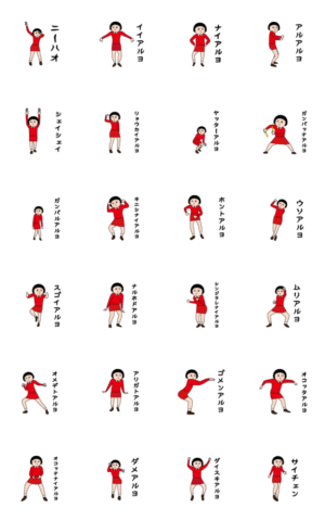 パッと見ダサいけど、昭和味があってかわいいスタンプ(中国っぽい 特別編)いつもの芋ジャージを着替えて中国っぽい言葉をしゃべってます