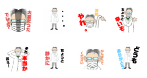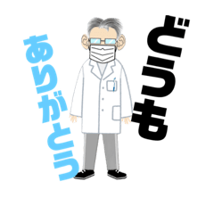 白衣をきたおじさんのスタンプです。ぜひ使ってねMikin より発売
