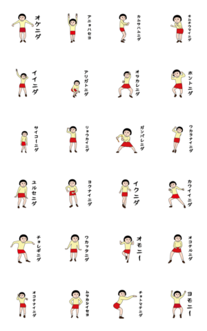 パッと見ダサいけど、昭和味があってかわいいスタンプ(韓国っぽい 特別編)いつもの芋ジャージを着替えて韓国っぽい言葉をしゃべってますどんおりじなる より発売