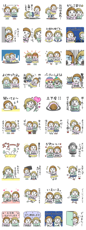 ついに新キャラ登場!女ともだち編です。日常会話や挨拶には勿論、恋人友達家族や仕事仲間に!ブサイクだけど愛嬌がある自虐大人女子ネタスタンプ!毎日使えるよ!
