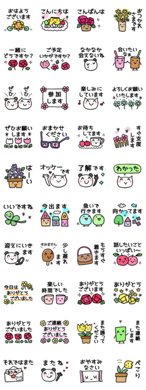 「出かける時に便利なスタンプ」のフォント版です。文字が大きくて見やすいシンプルな40個。サクっと送れて便利です。Konko3 より発売