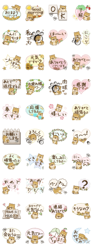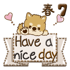 茶色い犬のちゃちゃ丸の春&普段よく使う言葉です。(柴犬、〇〇犬・・・日本犬のつもりです...)藤花 より発売