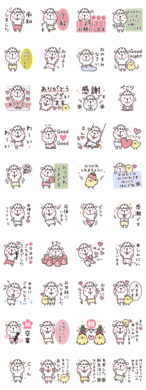 羊のメーコブが敬語でお届け♡いちご柄が好きな人に♡卒業に使える言葉も入っています。chaco より発売