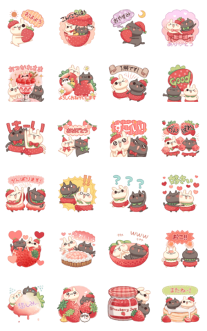 うさぎのしろとねこのくろの初のポップアップスタンプの登場です!春らしく可愛い苺のスタンプでいっぱい飛びだしてください!