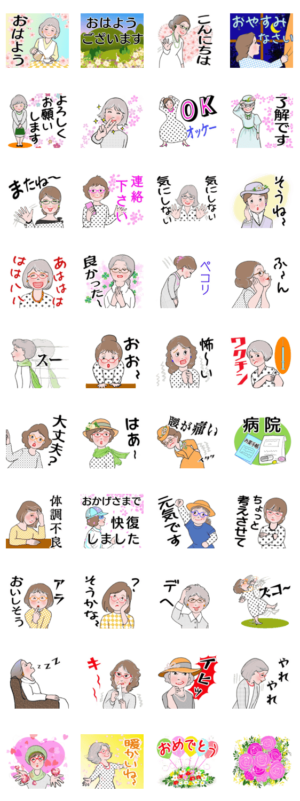 大人女子 春、中年からシニアの日常 スタンプ画像一覧