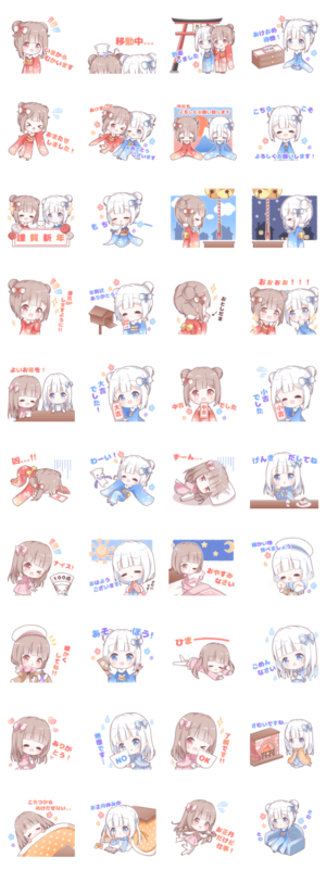 ゆるふわな姉妹の冬とお正月にピッタリなスタンプです。彼女達と楽しいお正月を迎えましょう!(2020年お正月キャンペーンの再販です)