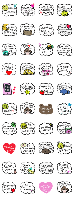 シンプルな日常会話スタンプです。英語&日本語です。