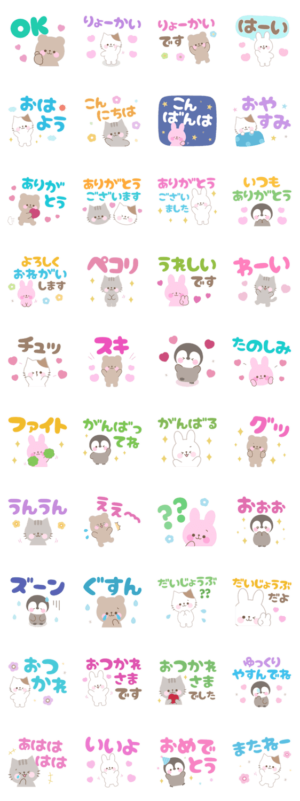 大人カラフルな動物のデカ文字挨拶スタンプのダウンロードはこちら↓