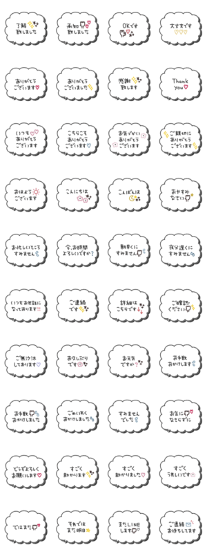 1つあると便利なメッセージスタンプです。シンプル/省スペース/大人可愛い/くすみカラー/あいさつ/友達/家族/恋人/大人女子/吹き出し/手書き/敬語