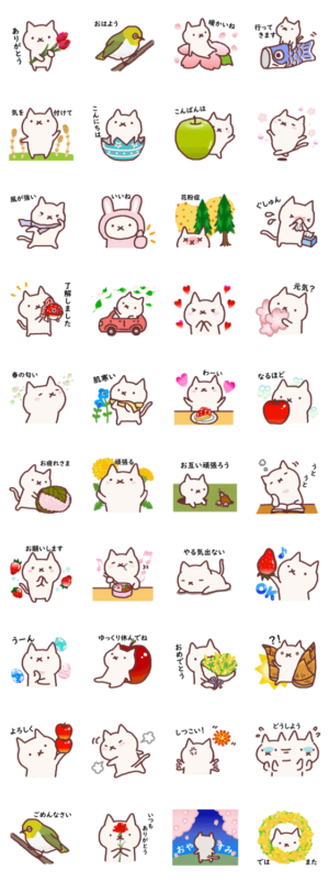 シリーズ第四弾。桜や苺、イースター、花粉症など春から初夏にかけて使えるモチーフを春らしい明るい色合いで表現しました。日常のやり取りに便利。絵文字版もあります。
