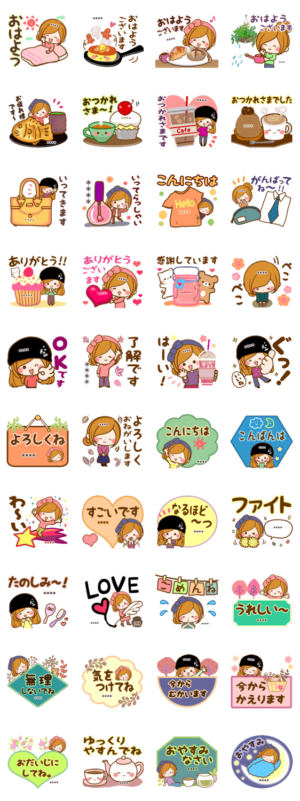 ふんわりしたやさしい色合いがかわいい日常スタンプです♪(こちらは以前発売したスタンプの文字、セリフ等をより見やすくしたカスタム再編集版です)