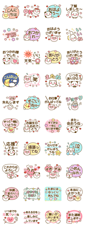 かわいい動物達10.1の【あいさつ いっぱい】スタンプです。タメ語 敬語両方入りで、デカ文字、いろんな人に送れて便利!です。パンダ ねこ ぶた❤作:usakazu1