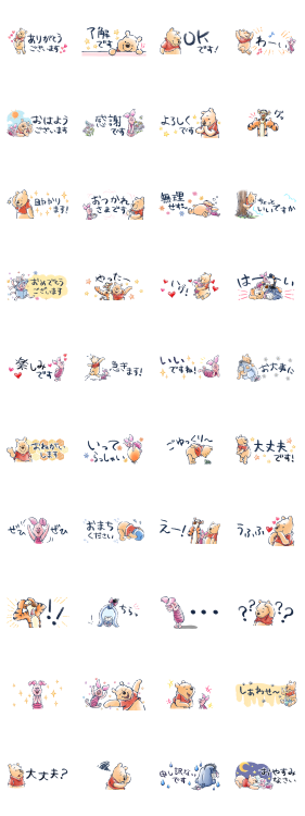 くまのプーさんの小さくて見やすいスタンプが水彩タッチで登場!敬語多めで目上の方にも送りやすい♪