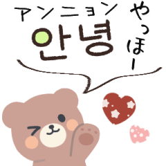 やさしい絵柄で気持ちを伝える韓国語&日本語のスタンプです。敬語/あいさつ/ 大人かわいい/くすみカラー/ハングル/可愛い/カタカナ/翻訳/読み/シンプル/おしゃれ/ねこ/くま