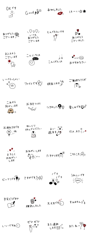 大人女子でも使いやすいシンプルにまとめたスタンプです。シンプルだけどお洒落。普段に毎日使えます。お洒落ママにも。省スペースで大人。敬語。